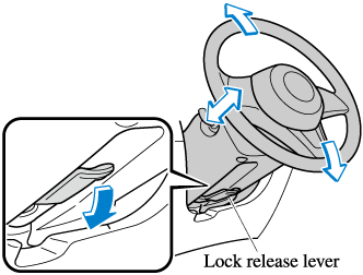 Never adjust the steering wheel while the vehicle is moving: