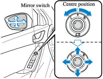 Before driving, adjust the inside and outside mirrors.