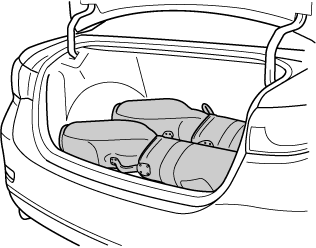 Otherwise, the luggage may move or collapse, resulting in injury or an accident. In addition, do not load luggage higher than the seatbacks. It may affect the side or rear field of view.