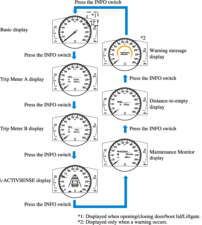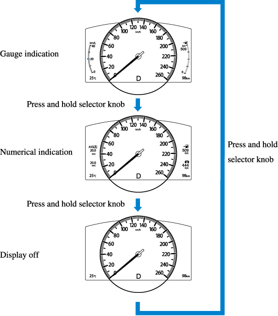 This displays the current fuel economy by calculating the amount of fuel consumption and the distance travelled.