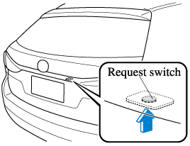 The liftgate/boot lid can be closed when the doors are locked with the key left in the vehicle. However, to prevent locking the key in the vehicle, the liftgate/boot lid can be opened by pressing the electric liftgate/boot lid opener. If the liftgate/boot lid cannot be opened despite doing this procedure, first push the liftgate/boot lid completely closed, then press the electric liftgate/boot lid opener to fully open the liftgate/boot lid.