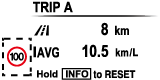 The driving distance for a specified interval is indicated. Two types (TRIP A, TRIP B) of interval distance and the average fuel economy for each can be measured.