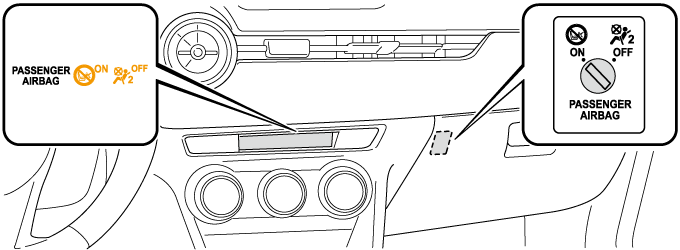 El airbag del pasajero y el airbag lateral, así como el sistema de pretensor de cinturón de seguridad permanecen desactivados hasta que el interruptor del airbag del pasajero se gira a la posición ON.