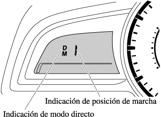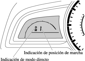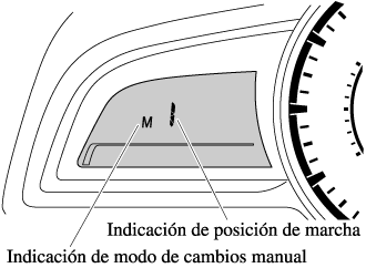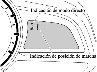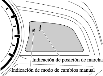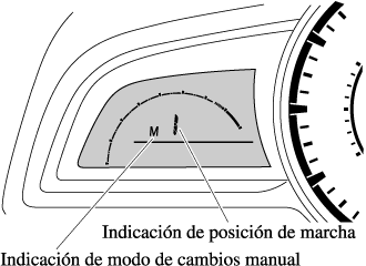 No conduzca el vehículo con la aguja del tacómetro en la ZONA ROJA mientras se encuentra en el modo de cambios manual. Además, el modo de cambios manual cambia al modo de cambios automático mientras se presiona completamente el pedal del acelerador.