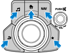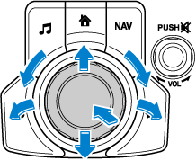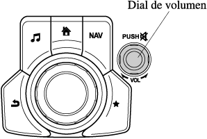 El interruptor del comandante se usa para ajustar el volumen y el funcionamiento de la exhibición. Incline o gire la perilla de comandante para mover el cursor. Presione la perilla del comandante para seleccionar el ícono.