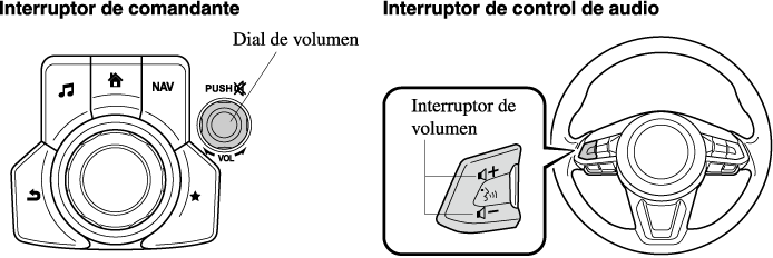 También se puede ajustar el volumen usando el botón de volumen en el volante.