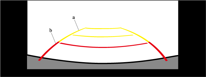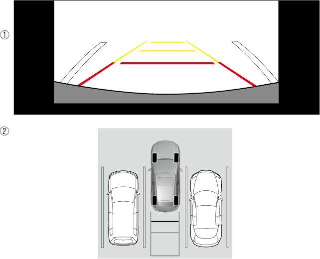 La distancia que aparece en la imagen exhibida es diferente de la distancia real debido a que la cámara de estacionamiento para ver hacia atrás está equipada con una lente específica.