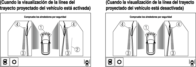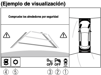 La indicación de advertencia en el monitor de vista de 360º también sincroniza el indicador de advertencia del sistema de control de puntos ciegos (BSM) en los espejos de puerta.
