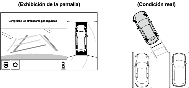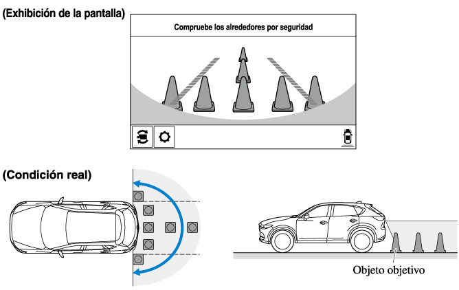 El área de detección de sensor de radar (trasero) está obstruida por una pared cercana o un vehículo estacionado. (Dé marcha atrás con el vehículo a una posición donde el área de detección del sensor de radar deje de estar obstruida.)