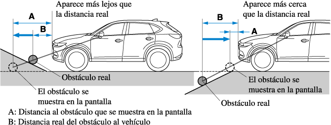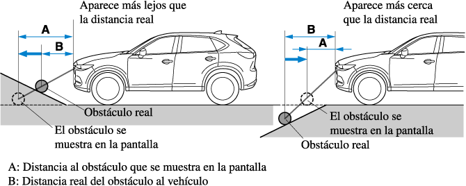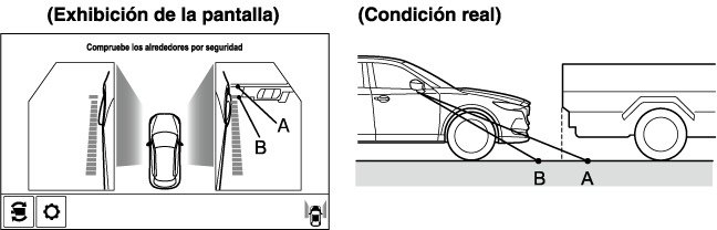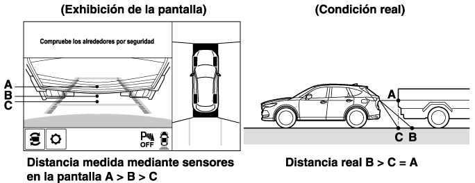 Bajo las siguientes condiciones, los sensores de radar (traseros) no pueden detectar objetos o podría resultar difícil detectarlos.