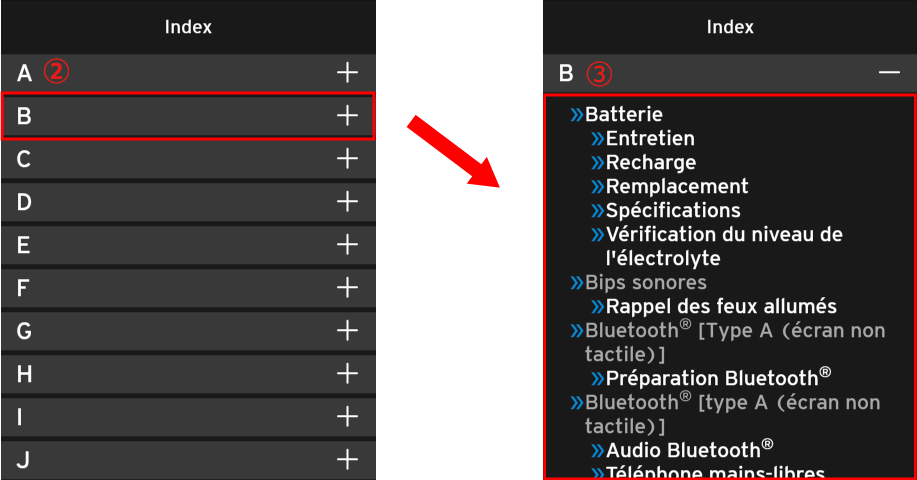 - Hay dos tipos de métodos de exhibición para el índice, y la pantalla se cambia automáticamente a una de las más adecuadas para el tamaño de pantalla del dispositivo que está usando dependiendo del tamaño de la pantalla.