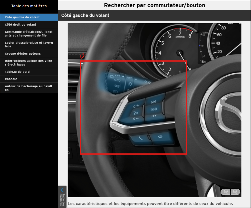 Puede buscar la información que necesita haciendo clic en la posición de un interruptor o botón.
