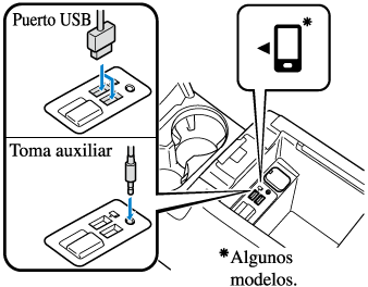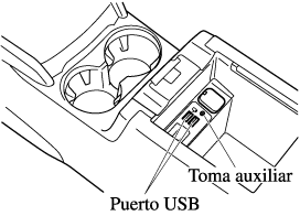 ) disponible comercialmente para conectar la unidad de audio portátil al toma auxiliar. Antes de usar el toma auxiliar, lea las instrucciones del fabricante para conectar una unidad de audio portátil al toma auxiliar.