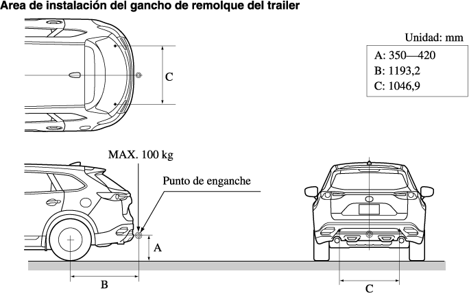 Mantenga siempre la carga en la punta del trailer dentro de los límites especificados en el cuadro de cargas para remolque del trailer: