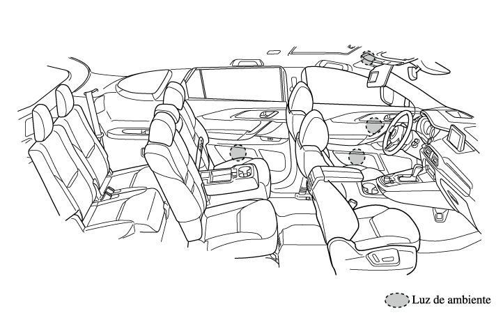 Las luces ambiente se atenúan cuando se encienden las luces de posición o los faros.