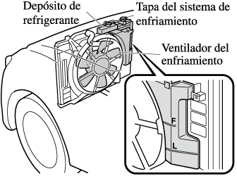 Si el ventilador de enfriamiento no funciona mientras el motor está funcionando, la temperatura del motor aumentará. Apague el motor y llame a un técnico experto, le recomendamos un técnico autorizado Mazda.