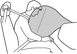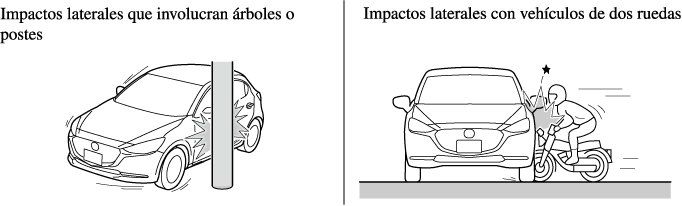 Cuando los sensores de choque de los airbags de aire detectan un choque lateral de mayor fuerza que moderada, el sistema infla solo el airbag lateral del lado del vehículo que ha sufrido la colisión. La bolsa de aire lateral se infla rápidamente para reducir las heridas en el pecho del conductor o acompañante al golpearse directamente con partes del interior como una puerta o ventanilla.