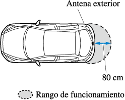 Cuando la carga de la pila está baja, o en lugares donde hay ondas de radio de alta intensidad o ruido, el rango de funcionamiento puede reducirse o el sistema podría no funcionar. Para determinar el cambio de la pila, consulte la sección Sistema de seguridad sin llave (Buscar).