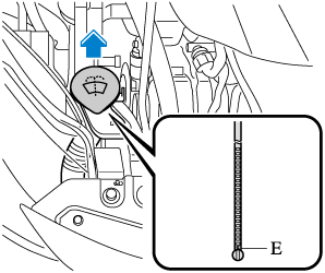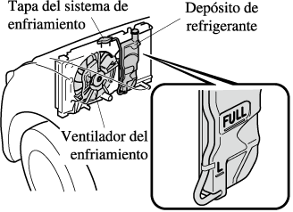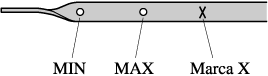 Inspeccione el nivel de aceite de motor periódicamente. Cuando inspeccione el aceite del motor, si el nivel de aceite del motor excede la marca "X" en la varilla, cambie el aceite de motor. Esto debe ser realizado por un técnico experto, le recomendamos un técnico autorizado Mazda. Al cambiar el aceite de motor, inspeccione el nivel de aceite usando la varilla indicadora de aceite y rellene de manera que el nivel de aceite del motor se encuentre dentro del rango entre las marcas MIN y MAX tal como se indica en la figura.