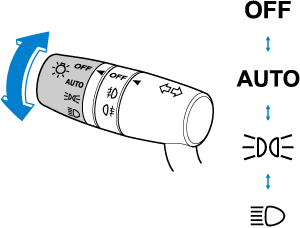 • Si no se realiza ninguna operación durante 3 minutos después que se tira de la palanca, los faros se apagan.