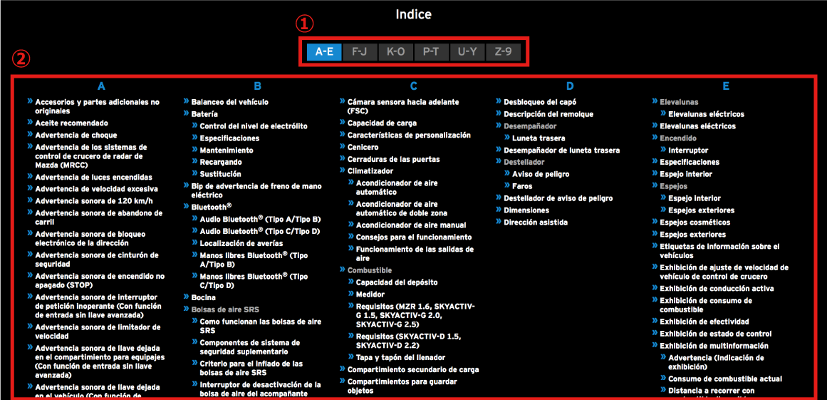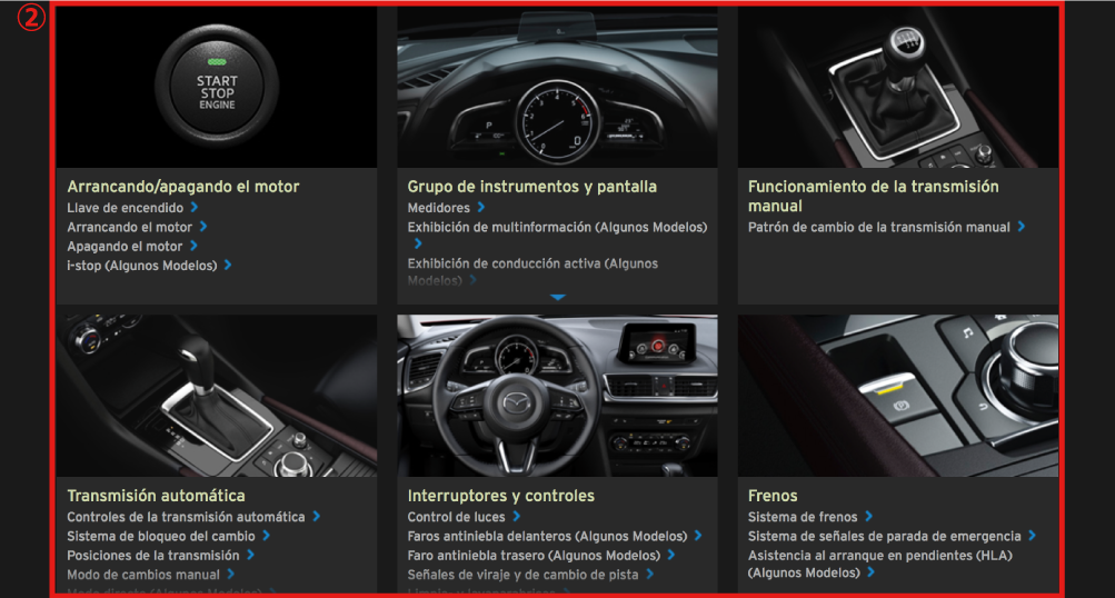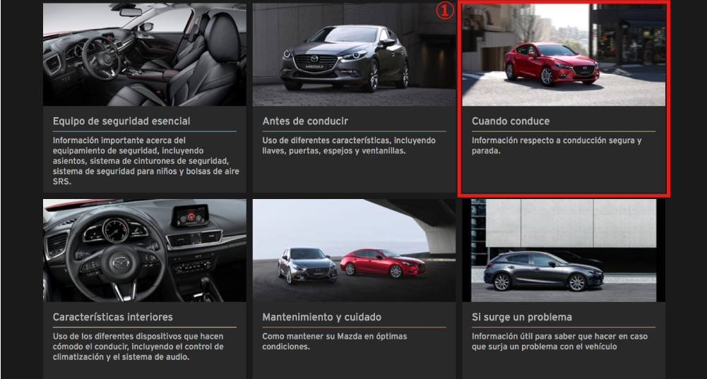 Las figuras complementan el texto para explicar mejor como disfrutar de su Mazda. Leyendo este Manual para el propietario en línea podrá aprender acerca de todas las funciones, información sobre aspectos importantes de la seguridad y sobre la forma de conducir en diferentes condiciones.