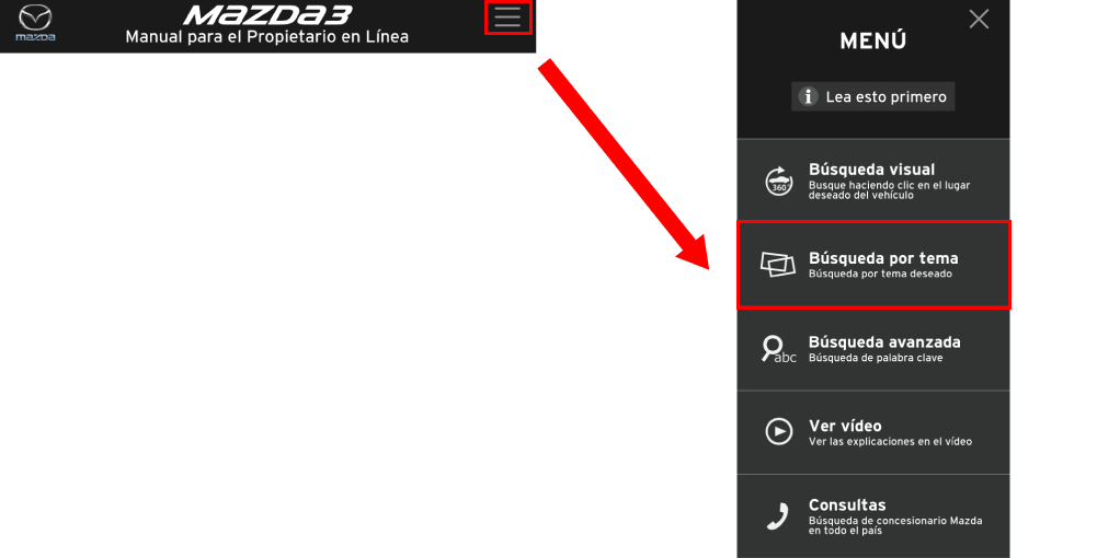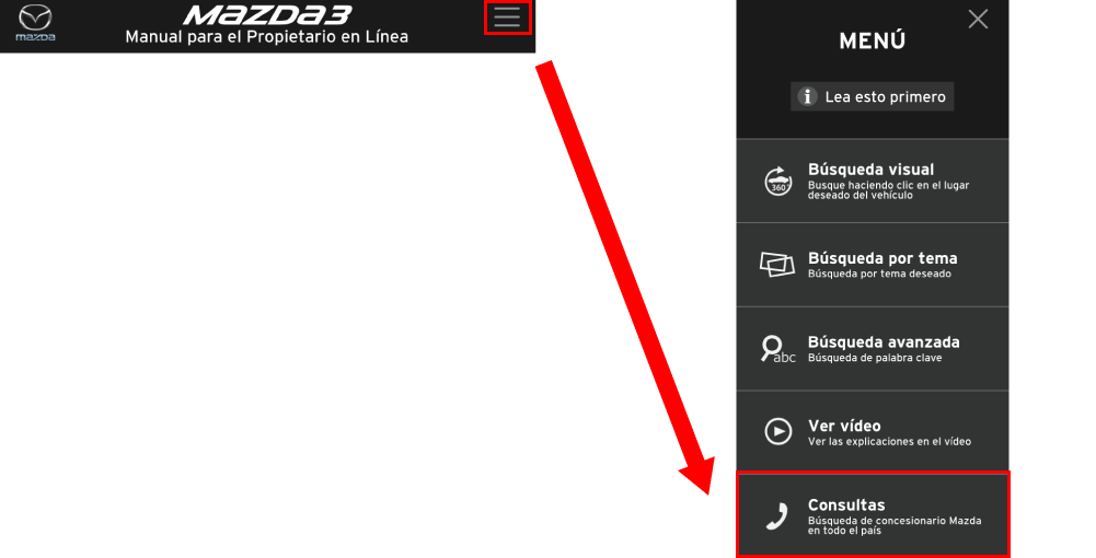 El deseo de Mazda es asistirlo para que logre un andar más placentero en su vehículo. Este Manual para el propietario en línea, cuando es leído de comienzo a fin, puede hacer eso de diversas maneras.
