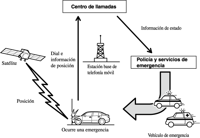 Si el vehículo recibe un impacto de cierto nivel o más en un choque, la información del vehículo será enviada automáticamente al centro de llamadas.