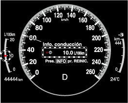 Este exhibe el consumo de combustible actual calculando el consumo de combustible y la distancia recorrida.