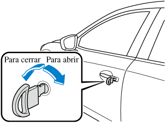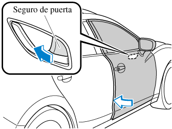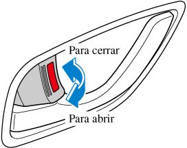 Si mueve el seguro para niños hacia la posición de bloqueo antes de cerrar la puerta, ésta no se podrá abrir desde el interior. La puerta sólo se podrá abrir tirando hacia arriba del mango del lado exterior.