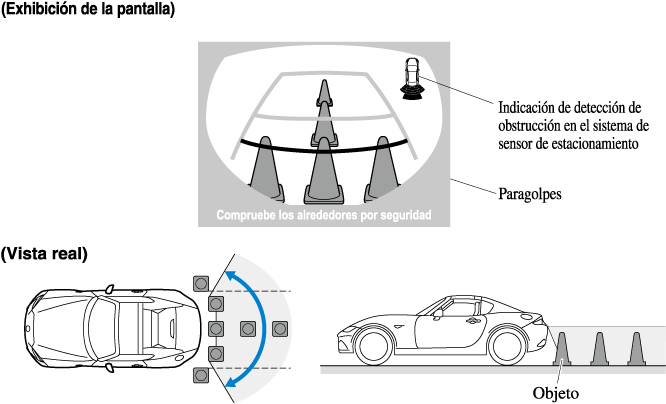 El rango exhibible es limitado. No se pueden exhibir los objetos debajo del paragolpes o alrededor de los extremos del paragolpes.