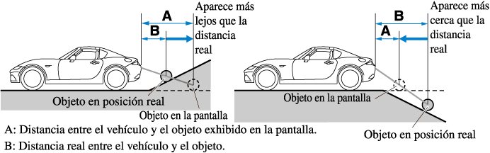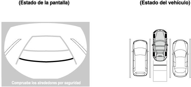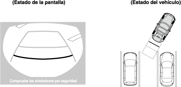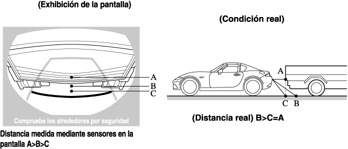 La distancia que aparece en la imagen exhibida es diferente de la distancia real debido a que la cámara de estacionamiento para ver hacia atrás está equipada con una lente específica.