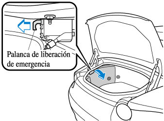 Retire parcialmente la cubierta dentro del maletero, luego tire de la palanca de liberación de emergencia.