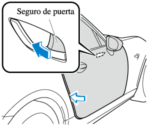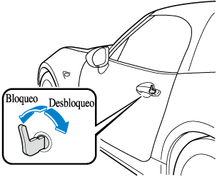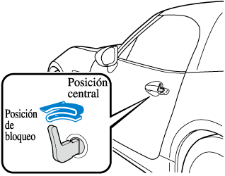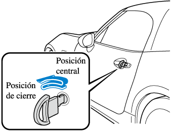 Ambas puertas, la tapa del maletero y la tapa del llenador de combustible se cierran automáticamente con seguro cuando se cierra la puerta del conductor con llave auxiliar. Ambas se abren cuando se abre la puerta del conductor usar la llave auxiliar.