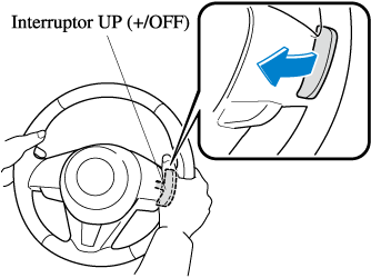 Para cambiar hacia abajo a un cambio menor con los interruptores de cambio del volante, tire del interruptor DOWN