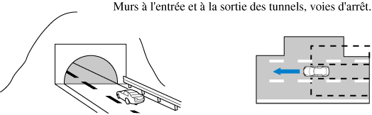 Lors d'une conduite près de murs sans motif (y compris les clôtures et les murs rayés longitudinalement).