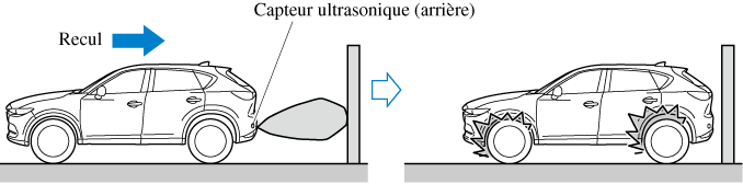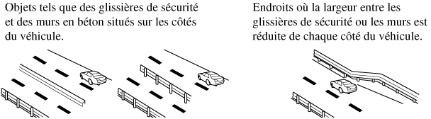 Il est possible que dans les cas suivants la caméra de détection avant (FSC) ne détecte pas de gros objets cible correctement, et chaque système peut ne pas être en mesure de fonctionner normalement.