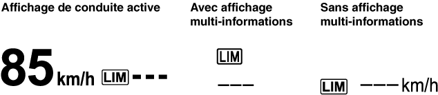 Si la caméra de détection avant (FSC) ne peut pas fonctionner normalement en raison d'un contre-jour ou du brouillard, les fonctions associées sont temporairement interrompues et les voyants d'avertissement suivants s'allument. Ceci n'indique toutefois pas une anomalie.