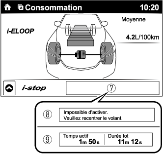 Les états de fonctionnement i-stop et de la génération d'électricité i-ELOOP sont affichés.