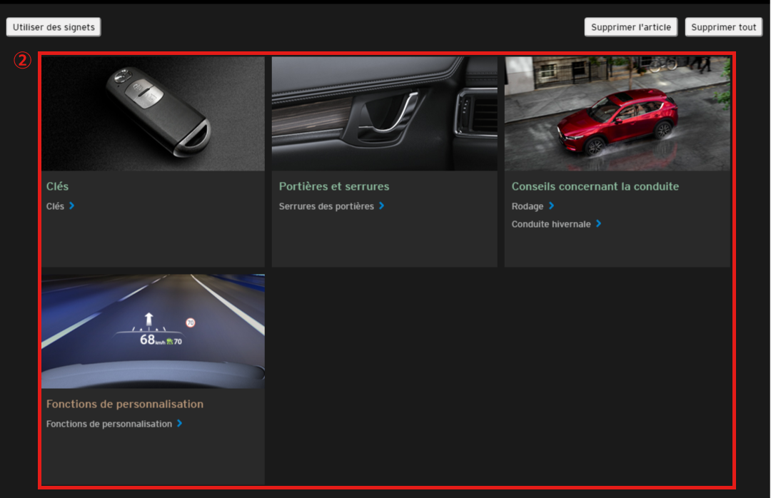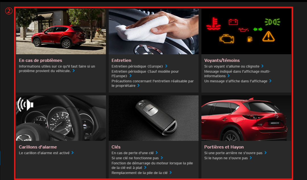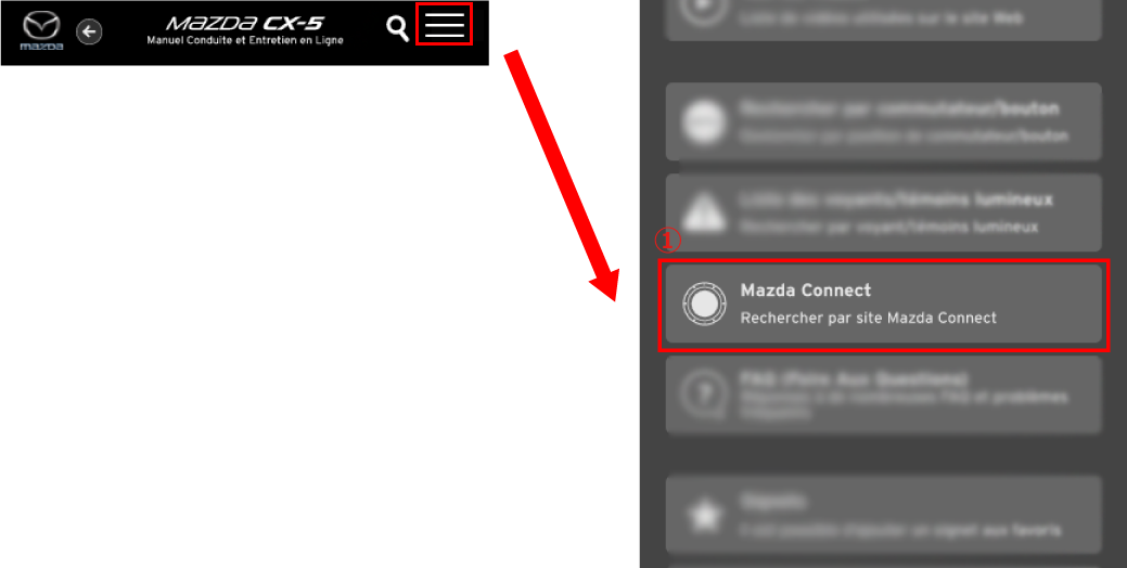 Vous pouvez rechercher les informations dont vous avez besoin à partir du site Mazda Connect.