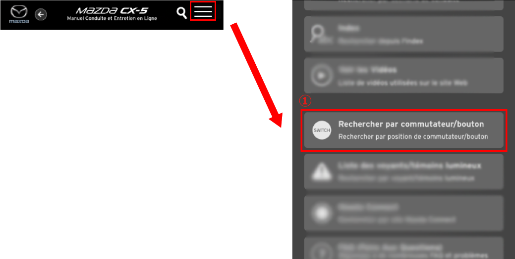 Sélectionnez Rechercher par commutateur/bouton dans le menu.