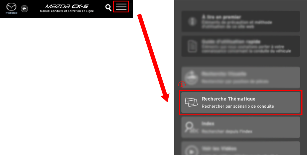 Vous pouvez rechercher les informations dont vous avez besoin en sélectionnant le scénario dans lequel vous conduisez le véhicule.