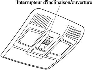 Le toit ouvrant peut être ouvert ou fermé lorsque vous utilisez l'interrupteur d'inclinaison/de coulissement au plafond au niveau des sièges avant.