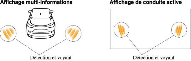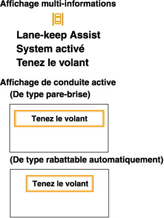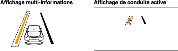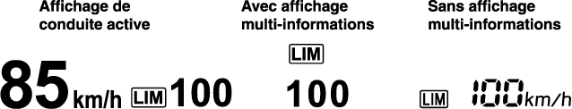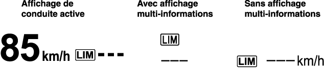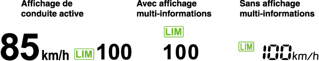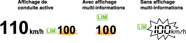 Si la vitesse du véhicule dépasse celle indiquée par le panneau de limitation de vitesse apparaissant sur l'affichage de conduite active en cours de conduite, le système alerte le conducteur par une notification sur l'affichage de conduite active et un signal sonore.