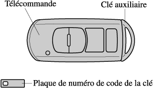 En cas de clé perdue ou volée, s'adresser à un mécanicien agréé Mazda dès que possible afin d'en obtenir une nouvelle et de désactiver la clé perdue ou volée.