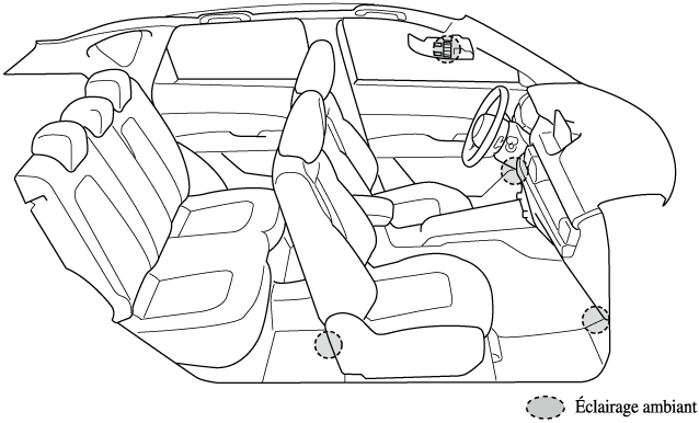 Un éclairage ambiant baisse en intensité lorsque les feux de position ou les phares sont allumés.