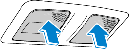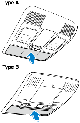 Lorsque l'interrupteur d'éclairage au pavillon est dans la position de portière ou la position désactivée, appuyer sur la lentille pour allumer les lampes de lecture avant, puis rappuyer sur la lentille pour l'éteindre.