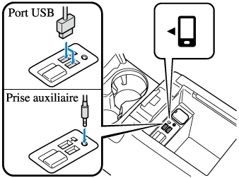 Lorsque vous connectez un appareil à la prise auxiliaire ou au port USB, du bruit peut se produire selon l'appareil connecté. Si l'appareil est connecté à la prise des accessoires du véhicule, le bruit peut être réduit en le débranchant de la prise des accessoires.