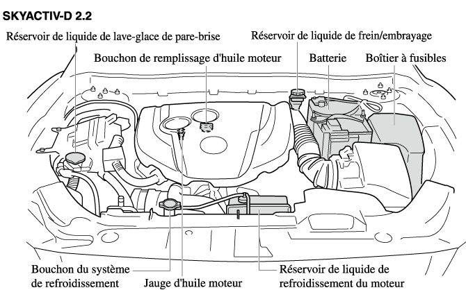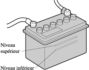 Le liquide de la batterie contient de l'ACIDE SULFURIQUE pouvant causer de graves blessures s'il entre en contact avec les yeux, la peau ou les vêtements. Si cela se produit, se rincer immédiatement les yeux avec de l'eau pendant 15 minutes ou se laver la peau complètement et consulter un médecin.