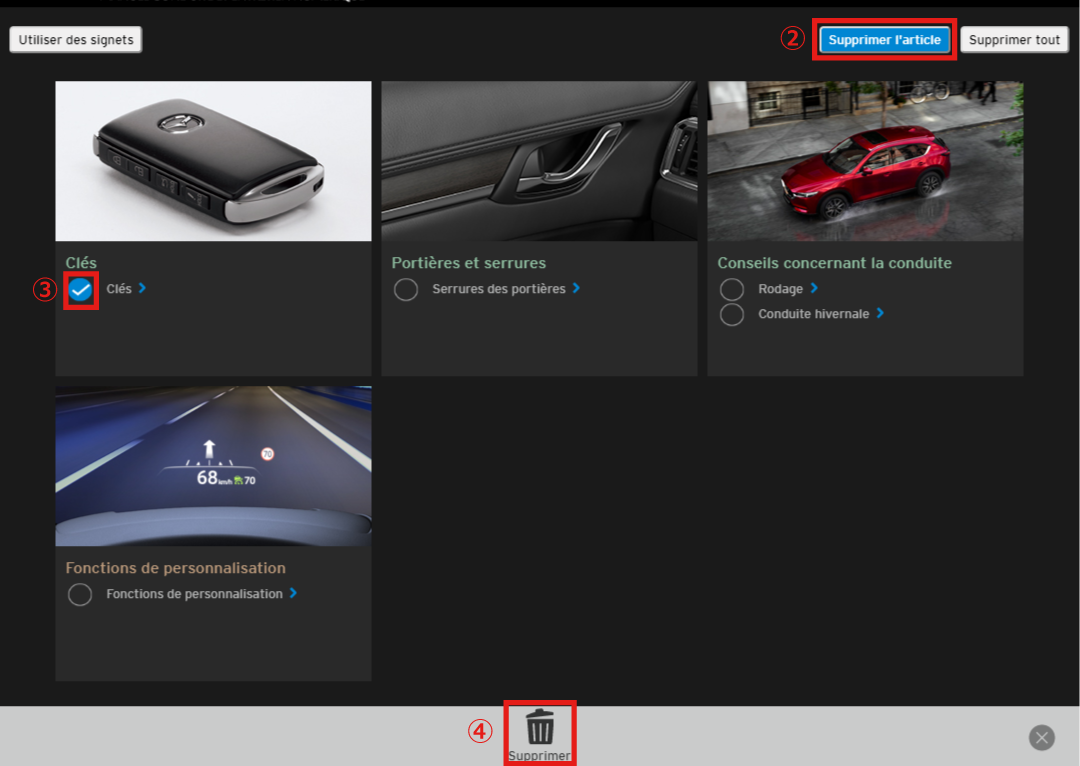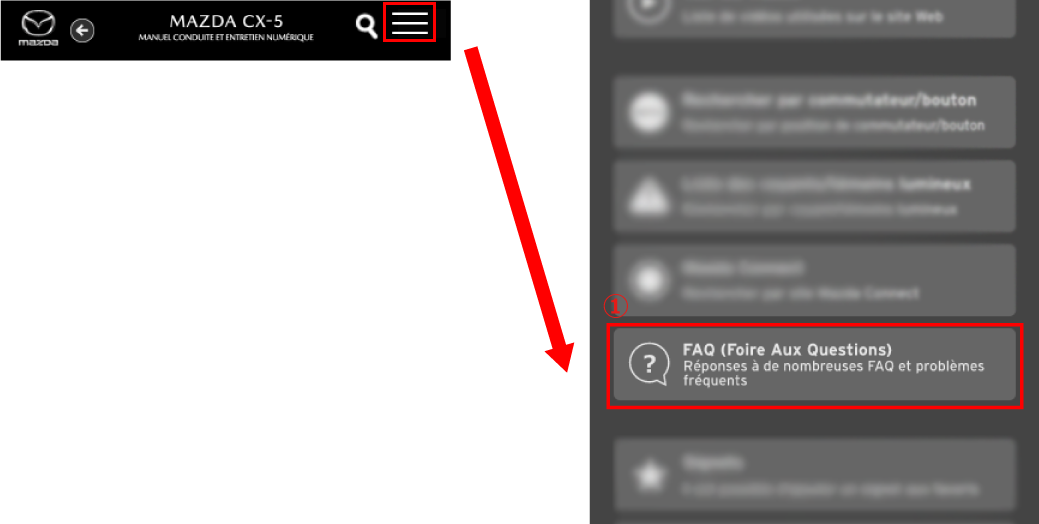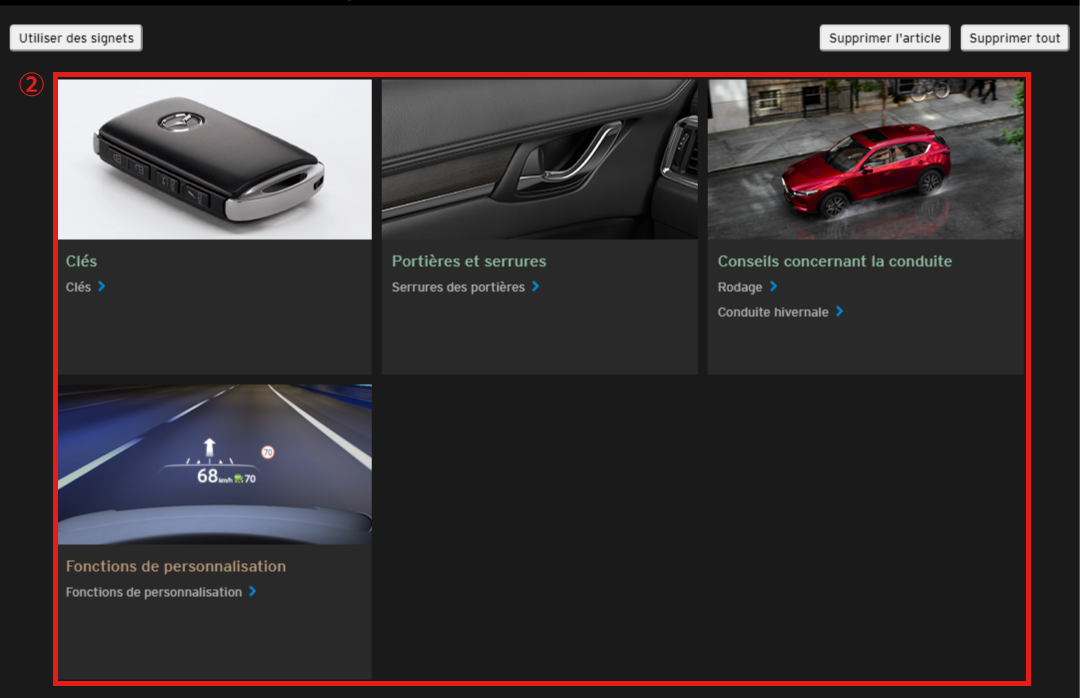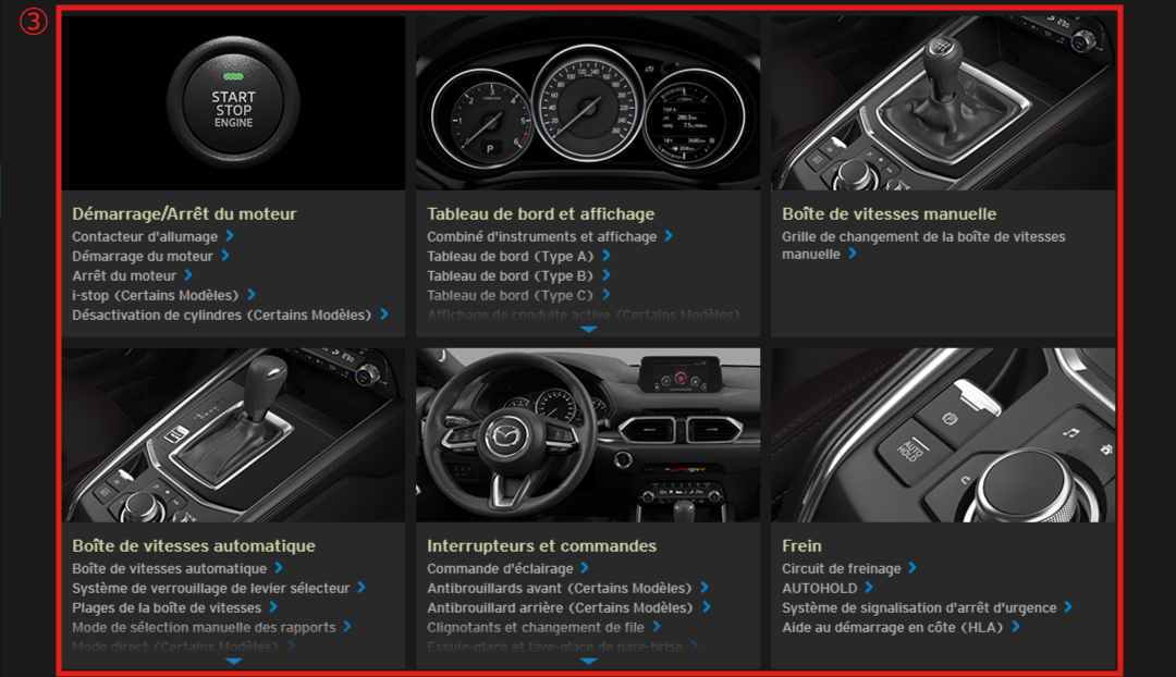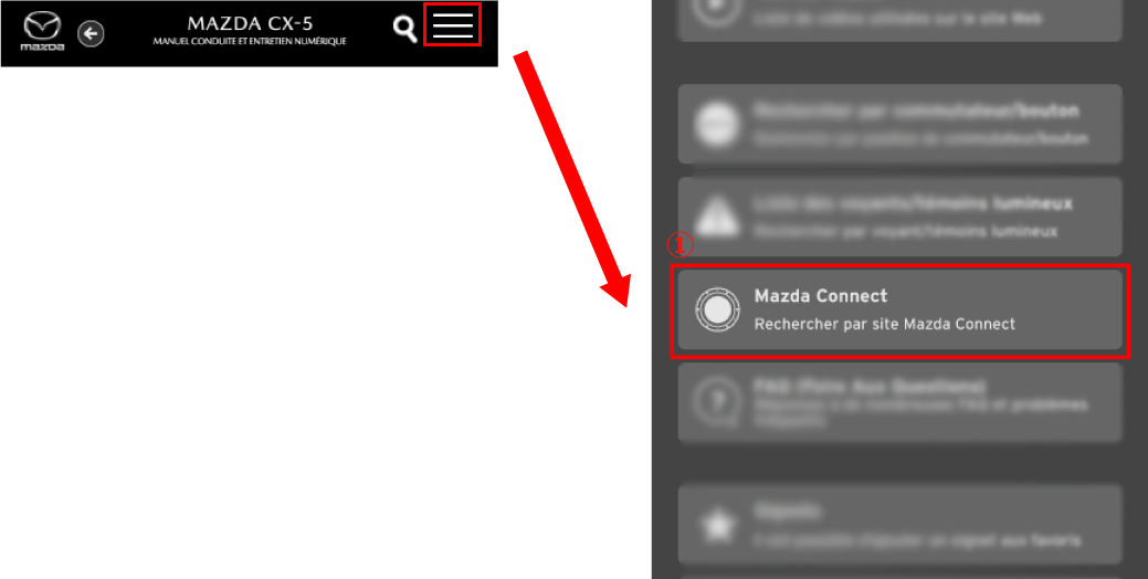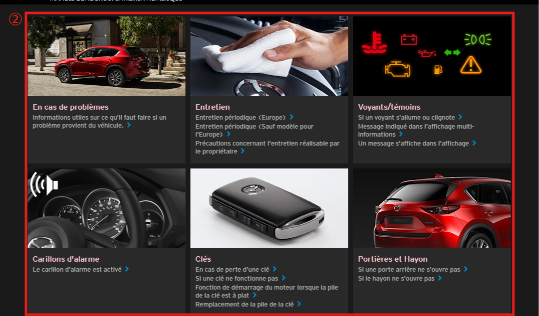 Vous pouvez rechercher les informations dont vous avez besoin à partir du site Mazda Connect.