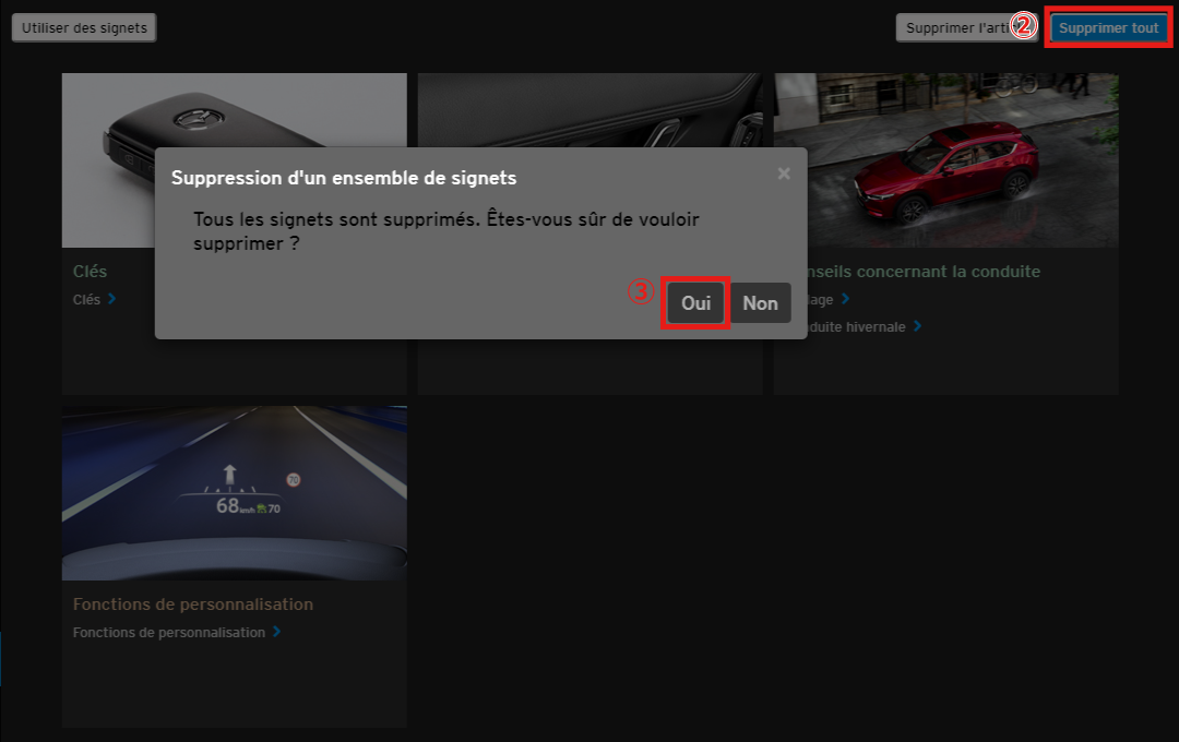 Tous les éléments enregistrés sont supprimés lorsque vous sélectionnez "Oui".
